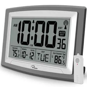 Atomic Clock with Outdoor and Indoor Temperature - 12.5 Inch Self-Setting Digital Clock Large Display, Battery Operated Wall Clocks or Desk Clocks for Bedroom, Livingroom, Office
