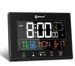 Digital Atomic Alarm Clocks for Bedrooms with 2 USB Ports, Color VA Display Atomic Clock with Indoor Temperature and Humidity, DST, Calendar, and Moon Phases for Seniors Elderly