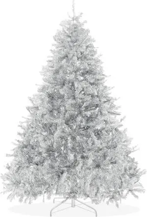 Casafield 6FT Silver Tinsel Artificial Holiday Christmas Tree with Sturdy Metal Stand