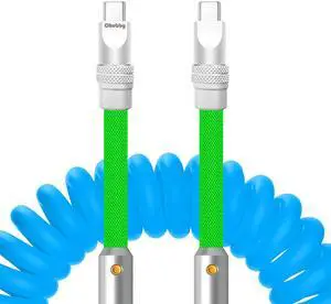 chubbycable Curly Chubby 240W Coiled USB C Cable Retractable Fast Charging Cable for Car Charger Cord Compatible with iPhone 17-15 Series, Dark Blue and Green, Type-C to Type-C, 2.29FT-3.6FT