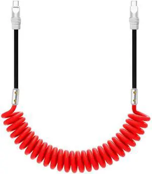 chubbycable Curly Chubby Retractable Fast Charging Cable 240W Coiled Charger Cord for Car Durable USB C Cable Compatible with iPhone 17-15 Series, Red, Type-C to Type-C, 2.13FT-6.56FT