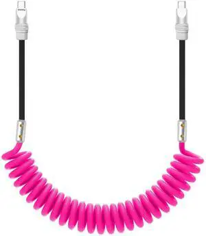 chubbycable Curly Chubby 240W Coiled USB C Cable Retractable Fast Charging Cable for Car Charger Cord Compatible with iPhone 17-15 Series, Rose Red+Black, Type-C to Type-C, 2.29FT-3.6FT