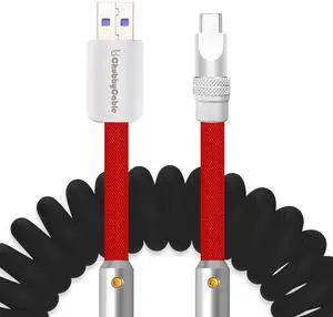 chubbycable Curly Chubby 120W Coiled USB C Cable Retractable Fast Charging Cable for Car Charger Cord Compatible with iPhone 17-15 Series, Red+Blue, USB-A to Type-C, 2.29FT-3.6FT