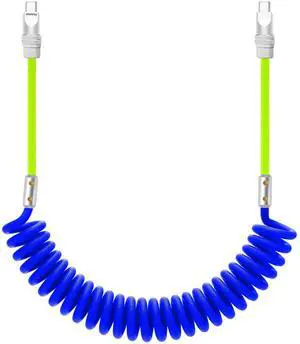 chubbycable Curly Colorblock Chubby 240W Coiled USB C Cable Braided Silicone Retractable Fast Charging Cable Compatible with iPhone 17-15 Series, Blue+Green, Type-C to Type-C, 2.29FT-3.6FT