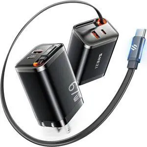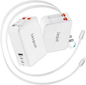 345W USB C Charger Block with 2 Built-in Retractable Cables,10-in-1 GaN IV USB C Charging Station,PD 65W Laptop Charger Power Adapter for MacBook Pro/Air,DELL,iPhone17/16/15/14,Galaxy S24,Android etc