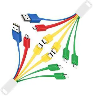 2Pack Multi Charging Cable Universal Charger Cord 1 to 5 Power Cable for Charging Multiple Devices Simultaneously Included iPhone iPad Android Wireless Earbuds Headphones Travel Essentials