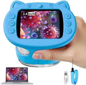 Microscope for Kids, 2.4 Inch Digital Microscope with 1000X Magnification, Handheld Camera Mini Pocket Magnifying Glass, Educational Christmas Birthday Gifts Toys for Ages 3+, Blue