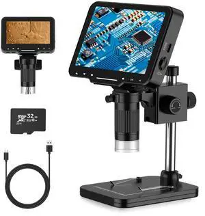 Digital Microscope with 7" LCD Screen,1500X Magnification Soldering Microscope with HDMI,Coin Microscope with 12MP Image Sensor,Windows/Mac/TV Compatible32GB Card