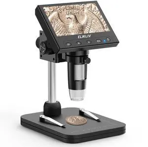 Coin Microscope for Adults: 4.3'' LCD Digital Microscope 1000x with 8 Adjustable LED Lights, PC View Compatible with Windows/MacBook, EDM4 Max