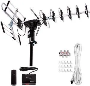 Five Star Outdoor Digital Amplified HDTV Antenna - up to 200 Mile Long Range, Directional 360 Degree Rotation by Remote Control, HD 4K 1080P FM,Support 5 TVs Plus Installation Kit