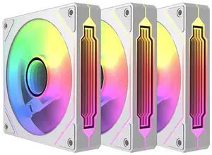 MONTECH RX 120MM - PWM Reverse Fan - Silent Performance - High Speed 1600PWM - High-End Durability with HDB Bearing - Stunning Outer Ring ARGB Lighting Design 3 in 1 Pack with 6X6 Fan Hub - White