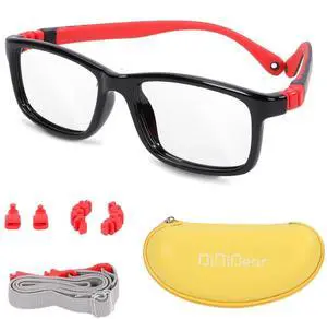 BiBiBear Bluelight Kids Glasses - Unbreakable TR90 Frame, 360 Ultra Flexible, Lightweight & Safe Eyeglasses (Ages 6-10 (Black & Red))