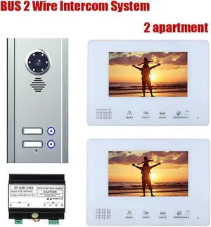 7 Inch LCD display 2-Wire 2pin Wire Video Door Phone Intercom Home doorbell Systems with Power Supply Controller easy install Support Unlocking Night Vision for home Doorbell, 2 doorbell + 2 monitor