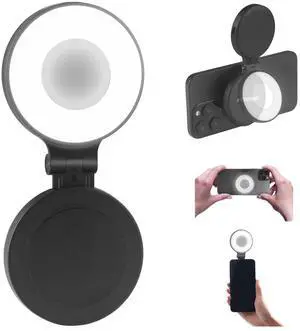 Portable Ring Light for Phone with Mirror, Foldable Clip-On Selfie Light for iPhone, Webcam, Vlog, TikTok, 3 Colors & 9 Brightness, Rechargeable LED Light for Video Recording and Makeup