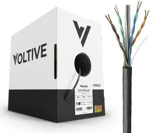 Voltive Cat6 Outdoor (CMX), 1000ft, Black - UV Resistant - Solid Bare Copper Bulk Ethernet Cable - UTP - 600MHz - UL Certified & ETL Verified