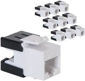 10-PACK CAT6 RJ45 Keystone Jack Female Coupler Insert Snap-in Connector Socket Adapter Port for Wall Plate Outlet Panel - White