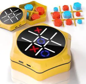 4-in-1 Handheld Tic Tac Toe Game Portable Electronic Board Games for Kids & Adults, Travel Games, Birthday Gifts, Yellow
