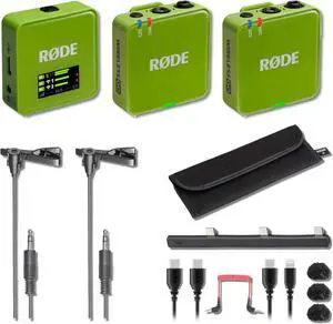 Rode Wireless GO (Gen 3) Compact Wireless Microphone System (Green) with 2X ATR3350XiS Omnidirectional Lavalier Microphones