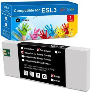 Compatible ECO-SOL ESL3 Ink Cartridge Black Replacement for Roland ECO-SOL MAX Ink Cartridge for VersaStudio BN-20, SolJet Pro II SC-500 SC-500EX SC-540 SC-540EX SJ-1000 Printers, ESL3-BK (220ML)