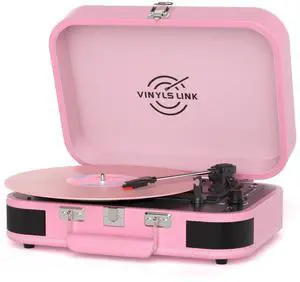 Bluetooth Vinyl Record Player with Built in Speakers, Portable Turntable for Vinyl Records, 3-Speed Vintage Pink Record Player with EQ Mode, LED Display, USB Recording, TF Card, AUX & RCA Output