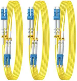 FiberPrime- OS2 LC to LC Fiber Optic Cable 3m/10ft, Duplex Singlemode 1G/10G, SMF, SM Fiber Optic Patch Cable, 9/125um, LSZH, 3-Pack