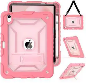 TIMISM Case for iPad (A16) 11th/10th Generation(2025/2022) with Shoulder Strap, Kickstand and Pencil Holder, Translucent Hard PC Back Cover, Heavy Duty Shockproof Rugged Protective Case, Red