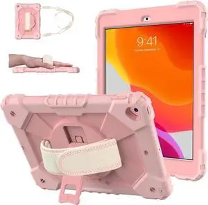 JAENFONG Case for Pad 9th/8th/7th Gen 10.2''Shockproof Rugged Heavy Duty Hybrid PC+TPU 360° Rotating Hand Strap&Kickstand Shoulder Strap for 10.2 inch Pad 9/8/7 2021/2020/2019 (Rose Gold)