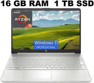 HP 15 Laptop, 15.6 HD (1366 x 768) Display, AMD Ryzen 7 5700U 8 cores Processor, AMD Radeon Graphics, 16GB DDR4  1TB PCIe SSD, Full-Size Keyboard, Wi-Fi 6, Windows 11 Pro ,Office 2024 License