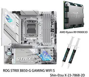 ASUS ROG Strix B850-G Gaming WiFi S Motherboard & AMD Ryzen 9 9950X3D CPU Combo, AMD AM5 B850 mATX white Motherboard, DDR5 WIFI 7,4x M.2, PCIe 5.0 x16, USB 20Gbps Type-C, Ryzen 9 9000 Series
