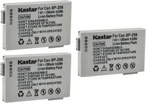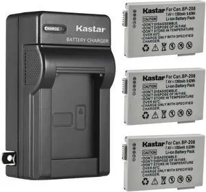 Kastar 3-Pack Battery and AC Wall Charger Replacement for Canon BP-208 BP208 BP-208DG Battery, Canon Optura S1, VIXIA HR10, DC10, DC19, DC20, DC21, DC22, DC40, DC50, DC51, DC95, DC100, DC200 Cameras- Part Number: NOCAR-3B-BP208-A