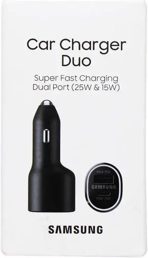 Samsung (25W) USB-C and (15W) USB Car Charger Duo - Black