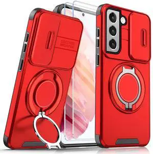 Case for Samsung Galaxy S21 5G Case Heavy Duty with Built in Screen Protector Hard Armor Military Anti-Fall Bumper Cover for Samsung S21 5G 6.2 2021 Phone Cases with Magnetic Ring Kickstand Red