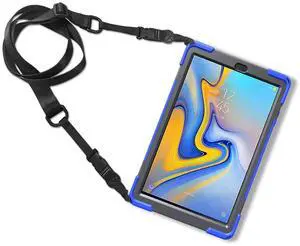 Juaupepo Rugged Case for Samsung Galaxy Tab A 10.5" 2018 (SM-T590/T595/T597), Portable Hybrid Shock-Proof Cover with 360 Rotatable Hook&Loop Handle,Shoulder Strap (Blue)