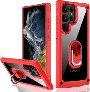 Military Grade Hybrid Case with MagSafe Magnetic Ring for Samsung Galaxy S23 Ultra - Red