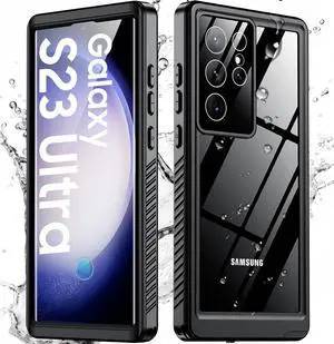 Designed for Galaxy S23 Ultra Case Waterproof Built-in [ Screen + Camera Lens Protector][IP68 Underwater] Full Protection Heavy Duty Shockproof Anti-Scratched Phone Case Black