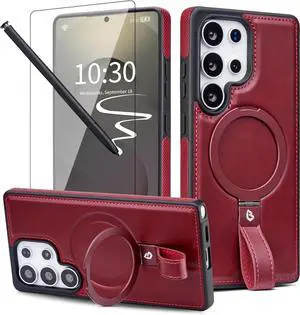 for Galaxy S23 Ultra Case Leather with Stand Anti-Slip Shockproof Loop Compatible with MagSafe Magnetic Protective Galaxy S23 Ultra Leather Case (Burgundy S23 Ultra-6.8inch)