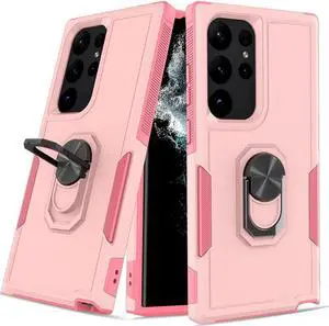 Military Grade TUFF Shockproof Hybrid Case with Ring Grip for Samsung Galaxy S23 Ultra - Pink