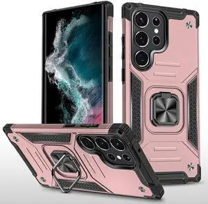 Robust Series Hybrid Case with Ring Grip for Samsung Galaxy S23 Ultra - Rose Gold