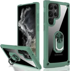 Military Grade Hybrid Case with Ring Grip for Samsung Galaxy S23 Ultra - Green