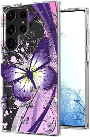 Butterfly Series Dual Layer Transparent Hybrid Case for Samsung Galaxy S23 Ultra - Purple Pink