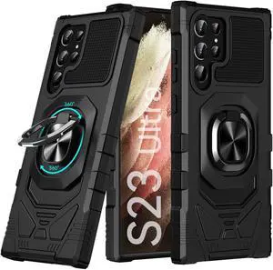Military Grade Hybrid Case with Ring Grip for Samsung Galaxy S23 Ultra - Black