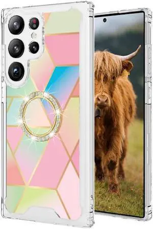 Shockproof Tough Snap-on Case with Ring Grip for Samsung Galaxy S23 Ultra - Marble Pink
