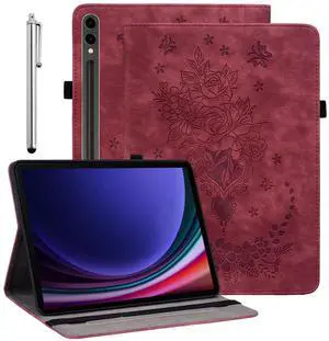 KEFBWAO Case for Samsung Galaxy Tab S10 Plus 2024/S9 Plus 2023/S7 FE 2021 12.4 Inch, Multi-Angle Flip PU Leather Protective Cover with Stylus Holder, Red