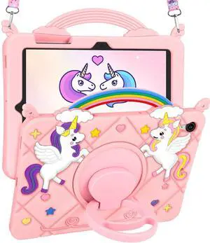 Uppuppy for Galaxy Tab S10 FE 5G Case/Tab S9 FE Case - Cute Cartoon Kawaii Unicorn Teen Girls Women Tablet Cover with Rotating Stand & Strap Soft Silicone Funda for Samsung Tab S9FE/S10FE 10.9 Inch