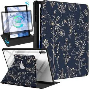 Wazzasoft for Samsung Galaxy Tab S10 Fe Case - Tab S9 Fe/S9 Case with Pencil Holder Women Girl Cute Girly Pretty Black Floral Unique Aesthetic Design Teens Rotating Tablet Cases Cover