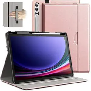 JETech Case for Samsung Galaxy Tab S10 Plus/Tab S9 Plus 12.4-Inch with S Pen Holder, PU Leather Business Folio Stand Protective Tablet Cover with Pocket & Straps, Multi-Angle Viewing (Rose Gold)