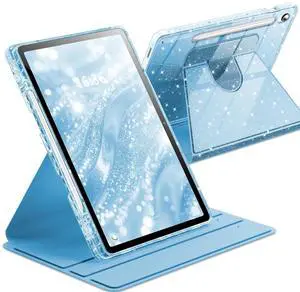 INFILAND Rotating Case for Samsung Galaxy Tab S10 Lite/ S10 FE/ S9 FE 5G 10.9 Inch/Tab S9 11 Inch 360 Cute Glitter Cover with Clear Back, S Pen Holder for Girls, Kids, Woman (Blue)
