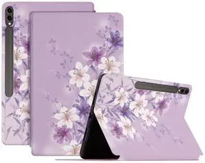Case for Samsung Galaxy Tab S9 Plus/Tab S9 FE Plus 12.4-inch Tablet 2023 (Model: SM-X810/X816B/X818U/X610/X616) for Girls Women Multi-Angle Viewing Kickstand Shockproof Protective Cover, Purple Flower
