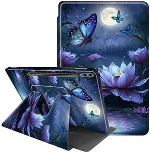RAUEDWDJS Case for Samsung Galaxy Tab S10 Plus/S9 FE Plus 12.4" with S Pen Holder-360 Rotating Multi-Angle Viewing Protective Cover with Auto Sleep/Wake for S9 Plus-Purple Flower Butterfly