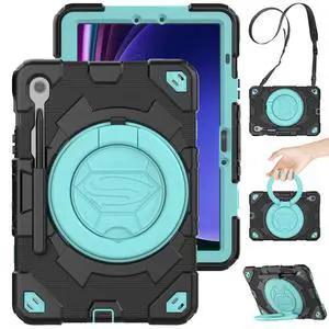 Shockproof Case for Samsung Galaxy Tab S10 Lite/S10 FE/S9/S9 FE 11" Tablet Cover with Shoulder+Hand Strap, Techcircle Heavy Duty Rotating Kickstand Rugged Defender Protective Case, Lavender+Aqua